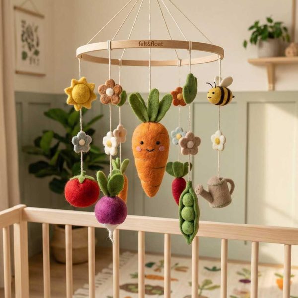 At Felt&Float, we curate miniature worlds designed to spark wonder. The Sunny Garden Meadow is a celebration of nature’s tiny miracles. Featuring cheerful honeybees, a lucky ladybug, and sun-ripened strawberries, this mobile brings a burst of high-saturation color and warmth to your baby’s room, creating a life-like garden that gently floats above their crib.