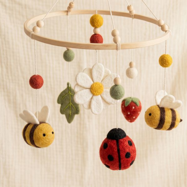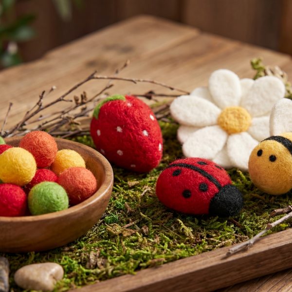 Elements: 2 Busy Bees, 1 Lucky Ladybug, 1 Ripened Strawberry, 1 Large Daisy, 1 Forest Leaf, and accented felt pom-poms.